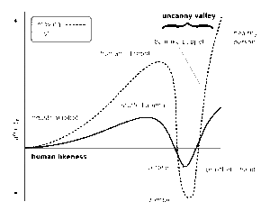 (Original diagram created by Masahiro Mori, who coined the uncanny valley term in the early 70s.) Source: Wikimedia Commons [https://commons.wikimedia.org/w/index.php?curid=2041097]