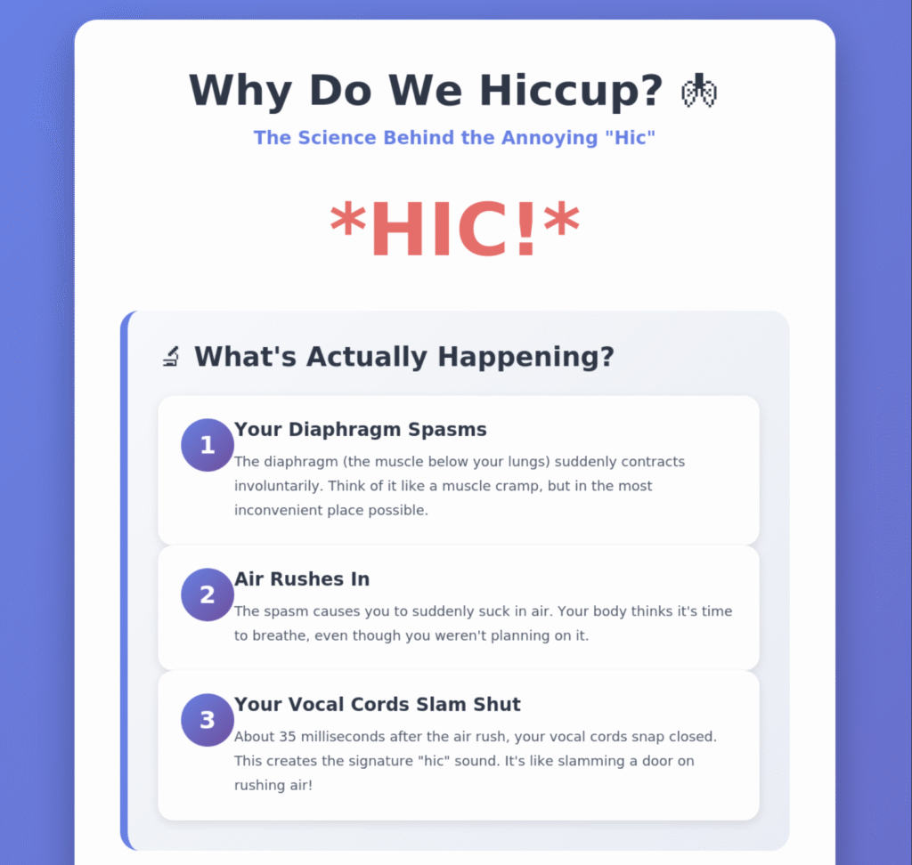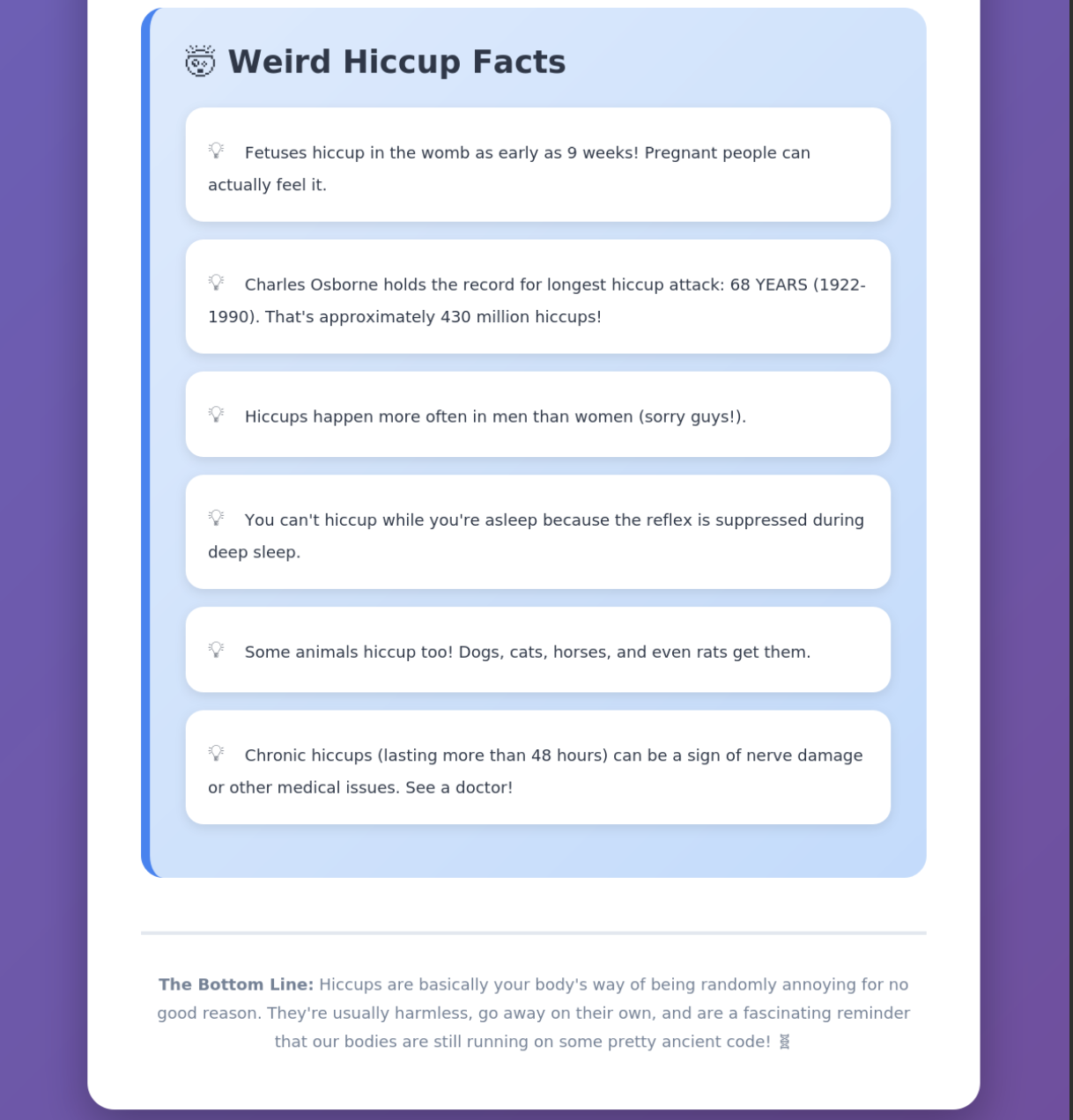 - Fodstad, H., & Kelly, P. J. (2007). Hiccups—A 10-year review of anatomy, etiology and treatment. Acta Neurologica Scandinavica, 115(1), 1-12. https://doi.org/10.1111/j.1600-0404.2006.00744.x